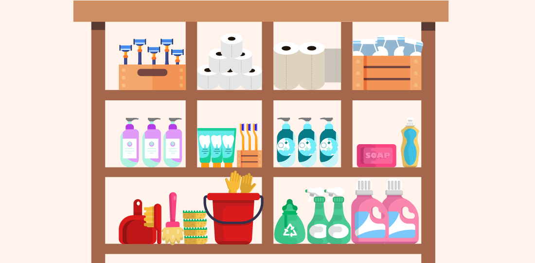 When shelving non-food items, consider which items are at risk of spilling and contaminating items below. Liquid and powdered items, such as laundry detergents and cleaning supplies, may spill and contaminate food products or other non-food items.