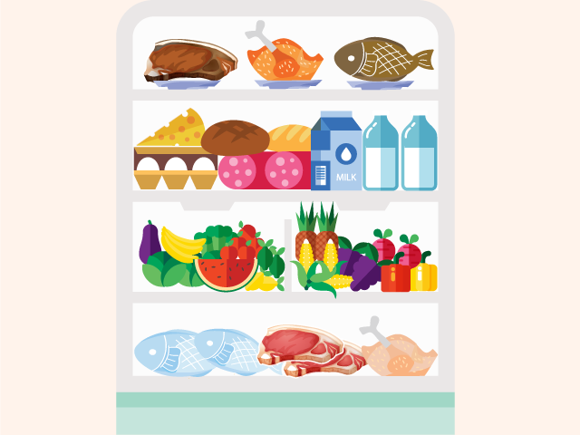 Carefully consider how to store your food on the shelves and within refrigerators or freezers. Place items that contain liquid or are at a higher risk of leaking on the middle and lower shelves. Place heavier items on lower shelving units to prevent top-heavy shelves and reduce lifting injuries.